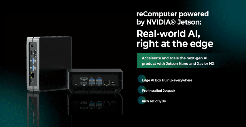 reComputer系列Jetson是使用NVIDIA先进AI嵌入式系统构建的紧凑型边缘计算机:J10(Nano 4GB)和J20(Jetson Xavier NX 8GB和Jetson Xavier 16GB)。配备丰富的扩展模块、工业外设和热管理,reComputer for Jetson可帮助您将流行的DNN模型和ML框架部署到边缘并进行高性能推理,加速和扩展下一代AI产品。