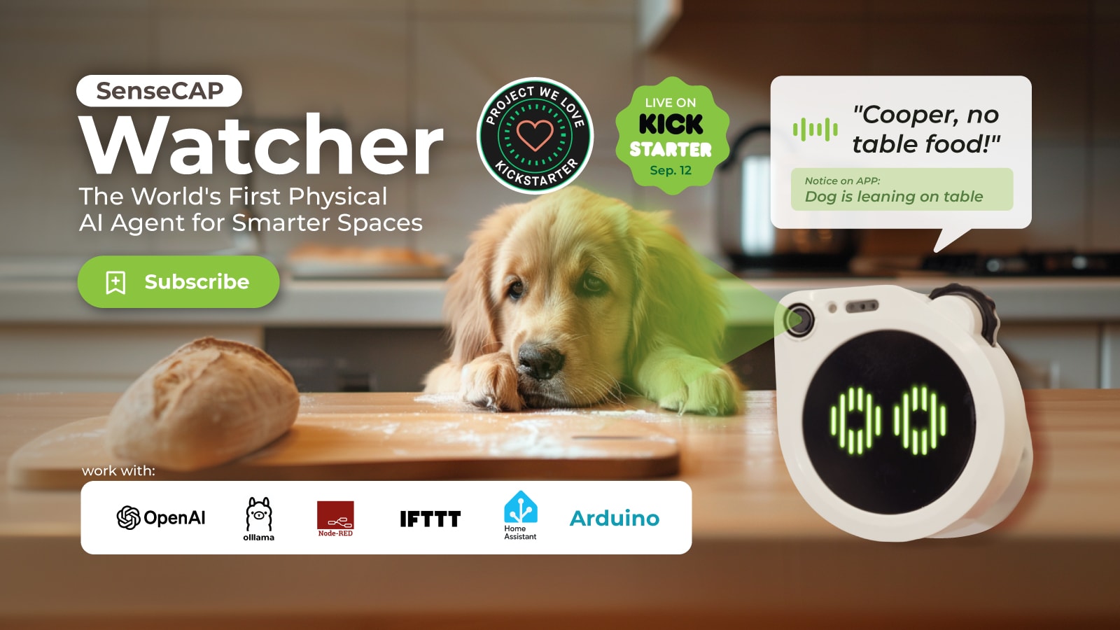 将Watcher放在不同场景中可以实现多样化的响应。看到狗撕纸时,说"停下,Cooper!",看到有人在禁烟区吸烟时,说"禁止吸烟!"