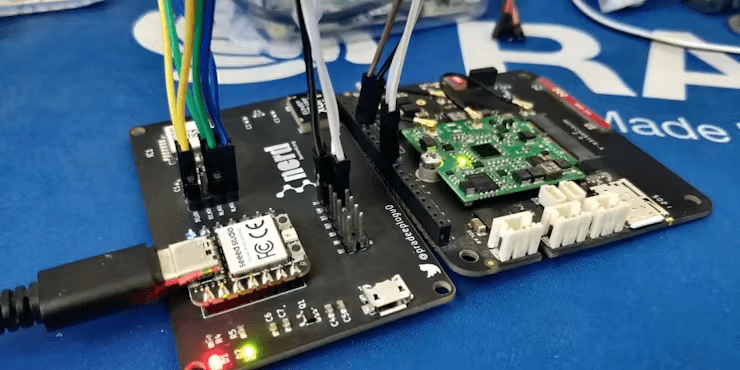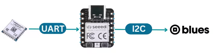在接收器端,Blues Wireless记事卡通过I2C端口连接至XIAO RP2040,Wio E5则通过UART端口连接。接收节点通过LoRa接收数据后,利用Blues记事卡将数据传输至云端。