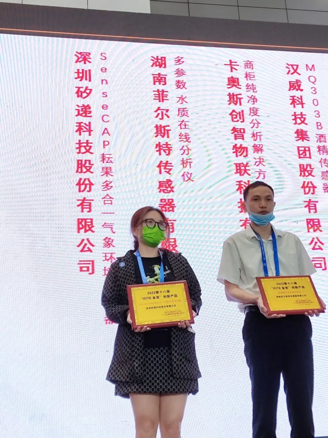 11月15日上午,在IoT金奖颁奖典礼上,“SenseCAP耘果多合一气象环境传感器”再次获奖,荣获“IoT金奖创新产品”,矽递科技品牌社区负责人叶雨作为公司代表上台领奖。