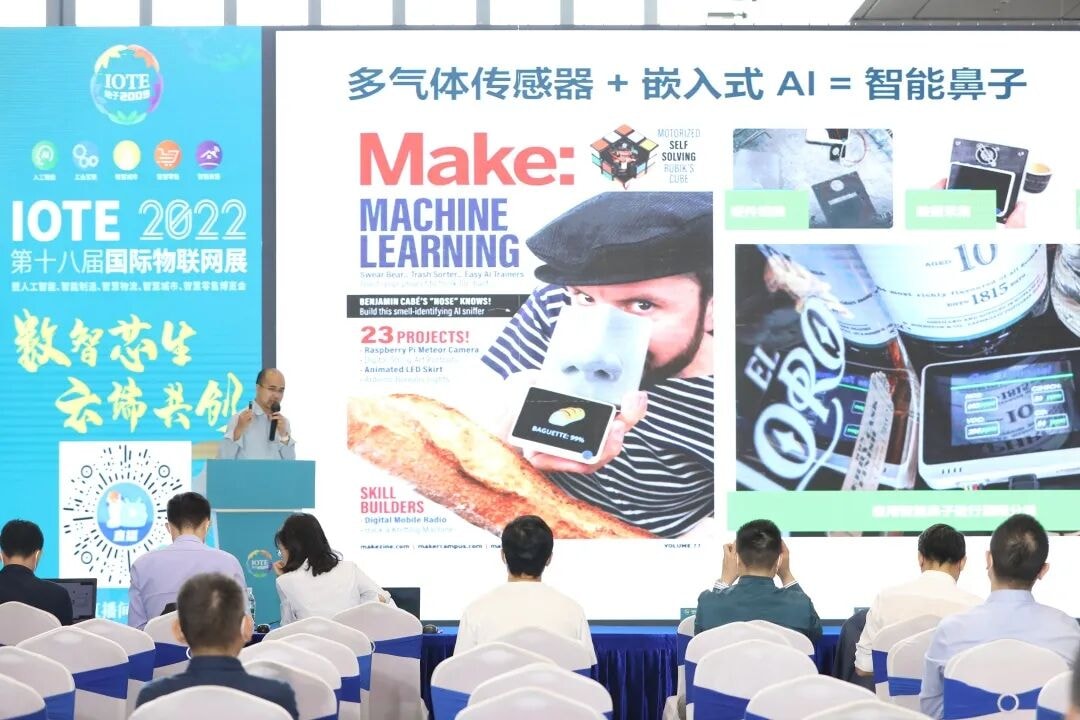 在“IOTE 2022·智能传感与嵌入式技术与应用高峰论坛”环节,矽递科技合伙人蒋宇发表题为“格物致知,重造感知”的演讲,讲述了矽递科技致力于降低技术门槛,采用模块化、无代码等方式将新兴技术赋能开发者,联动全球创客社区的创新力量协同创新,打造了诸如“嵌入式AI鼻子”“树木病害检测AIoT方案”“非法采砂监测”等项目案例,完成了从技术可能性到落地解决方案的跃升,真正实现让科技随手可得。