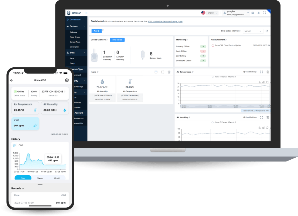 通过 SenseCAP Mate 应用和 SenseCAP 门户网站,用户可以远程查看和管理传感器收集的实时数据与历史记录。此外,数据还可以在 Datacake 和 Ubidots 等第三方平台上进行可视化展示。这大大节省了农民的时间,无需亲自前往葡萄园查看环境状况。