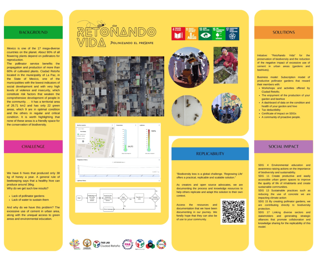 Our engagement extended beyond the conference venue, as our colleague Crail Lyu participated in the Fab City Challenge: Greening Communities. This initiative, hosted by FabLab Ciudad Retoño, focuses on bee conservation to ensure biodiversity and food security. Together with the team members, they’ve developed :
