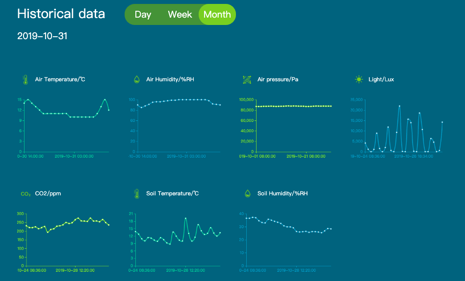 图5. IoTea项目数据平台显示的实时数据和历史数据